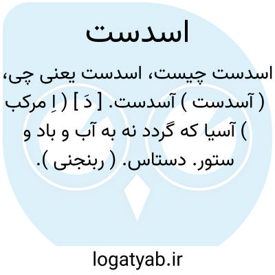( آسدست ) آسدست. [ دَ ] ( اِ مرکب ) آسیا که گردد نه به آب و باد و ستور. دستاس. ( ربنجنی ).