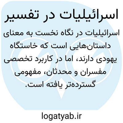 [ویکی فقه] اسرائیلیات گر چه در ظاهر به معنای داستان هایی است که از یک منبع یهودی سرچشمه گرفته باشد ولی در اصطلاح مفسران و محدثان مفهوم وسیع تری به خود گرفته و شامل تمام افسانه های کهنی است که از گذشتگان وارد تفسیر و حدیث و تاریخ شده است؛ اعم از اینکه منشا اصلی آن یهودی، مسیحی یا غیر آن باشد.