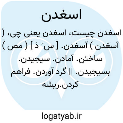 ( آسغدن ) آسغدن. [ س َ دَ ] ( مص ) ساختن. آمادن. سیجیدن. بسیجیدن. || گرد آوردن. فراهم کردن.ریشه این کلمه اگر ساختن باشد سین بفتح است و اگر سیجیدن باشد سین مکسور است، و تمیز آن برای من میسر نیست. رجوع به آسغده، بسغده، بسغدن و بسغدیدن شود.