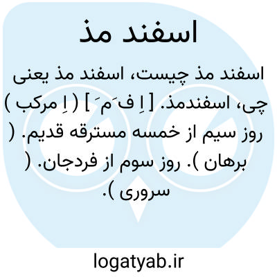 اسفندمذ. [ اِ ف َم َ ] ( اِ مرکب ) روز سیم از خمسه مسترقه قدیم. ( برهان ). روز سوم از فردجان. ( سروری ). روز بیست وهشتم بهمن و سیم از پنجه دزدیده. رجوع به اسفندارمذ شود.