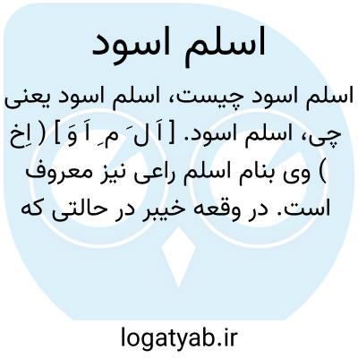 اسلم اسود. [ اَ ل َ م ِ اَ وَ ] ( اِخ ) وی بنام اسلم راعی نیز معروف است. در وقعه خیبر در حالتی که گوسفندی از آن یک تن یهودی را میچرانید ناگهان بخدمت حضرت ختمی مرتبت آمده تقاضای مسلمانی کرد و بعساکر مسلمین ملحق گردید و در حرب شرکت کرد و در همان روز بدرجه شهادت نایل گشت. این قصه و اسم این شخص محل اختلاف است. برخی نام وی را ابوسلمی میدانند. ( از قاموس الاعلام ترکی ).