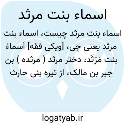 [ویکی فقه] اَسماءْ بنت مَرْثَد، دختر مرثد ( مرثده ) بن جبر بن مالک، از تیره بنی حارث می باشد.