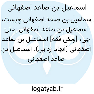 [ویکی فقه] اسماعیل بن صاعد اصفهانی (ابهام زدایی). اسماعیل بن صاعد اصفهانی ممکن است اشاره به اشخاص و شخصیت های ذیل باشد: • ابوالحسن اسماعیل بن صاعد بن محمد صاعدی اصفهانی، بزرگ ترین فرزند قاضی صاعد از خاندان صاعدی اصفهانی• ابوالحسن اسماعیل بن صاعد بن منصور صاعدی اصفهانی، از علمای خاندان صاعدی اصفهانی