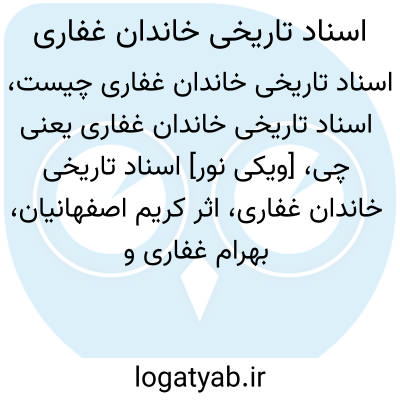 [ویکی نور] اسناد تاریخی خاندان غفاری، اثر کریم اصفهانیان، بهرام غفاری و اصغر عمران، دربردارنده مجموعه ای از اسناد دوره قاجار از 1243ق تا 1327ق می باشد که در خاندان غفاری کاشانی موجود بوده است.