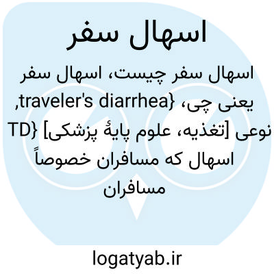 {traveler's diarrhea, TD} [تغذیه، علوم پایۀ پزشکی] نوعی اسهال که مسافران خصوصاً مسافران راه دور را دچار می کند