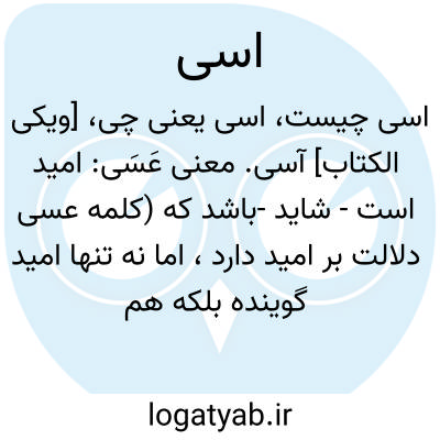 [ویکی الکتاب] آسى. معنی عَسَی: امید است - شاید -باشد که (کلمه عسی دلالت بر امید دارد، اما نه تنها امید گوینده بلکه هم در مورد امید خود گوینده استعمال دارد و هم امید مخاطب و هم در مقام مخاطب یعنی مقامی که جا دارد گوینده در برابر مخاطب صرفا اظهار امید کند نه اینکه به راستی خود او د...