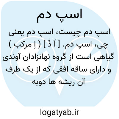 اسپ دم. [ اَ دُ ] ( اِ مرکب ) گیاهی است از گروه نهانزادان آوندی و دارای ساقه افقی که از یک طرف آن ریشه ها دوبه دو تقسیم شده و از طرف دیگر آن ساقه هائی خارج میشود. ساقه های هوائی آن دارای شیارهای طولی است که از یک گره به گره دیگر امتداد یافته است. در هر گره برگهای باریک بطور فراهم قرار گرفته. ج، اسپ دُمان. رجوع به گیاه شناسی تألیف گل گلاب شود.
