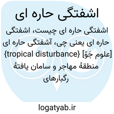 {tropical disturbance} [علوم جَوّ] منطقۀ مهاجر و سامان یافتۀ رگبارهای همرَفتی و توفان های تندری منطقۀ حارّه که بدون گردش بستۀ باد است و حداقل بیست وچهار ساعت هویت خود را حفظ می کند