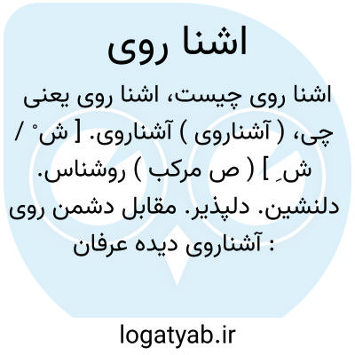 ( آشناروی ) آشناروی. [ ش ْ / ش ِ ] ( ص مرکب ) روشناس. دلنشین. دلپذیر. مقابل دشمن روی: