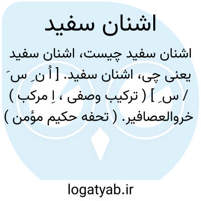 لغت نامه دهخدا اشنان سفید. [ اُ ن ِ س َ / س ِ ] ( ترکیب وصفی، اِ مرکب ) خروالعصافیر. ( تحفه حکیم مؤمن ) ( مفردات قانون چ تهران ص 160 س 14 ). زبدالعصافیر. ( ذخیره خوارزمشاهی ).