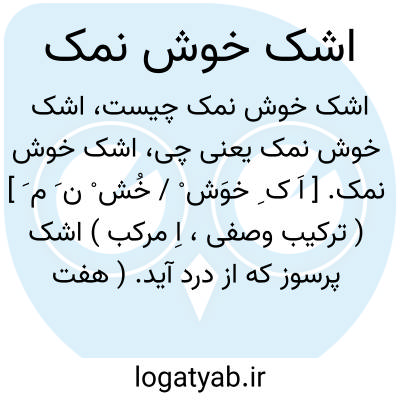 اشک خوش نمک. [ اَ ک ِ خوَش ْ / خُش ْ ن َ م َ ] ( ترکیب وصفی، اِ مرکب ) اشک پرسوز که از درد آید. ( هفت قلزم ). اشک شور که از درد فراق دوستان زاید. ( رشیدی ).