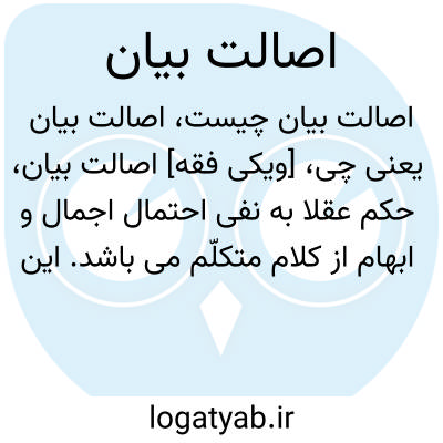 [ویکی فقه] اصالت بیان، حکم عقلا به نفی احتمال اجمال و ابهام از کلام متکلّم می باشد.