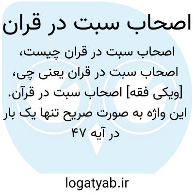 [ویکی فقه] اصحاب سبت در قرآن. این واژه به صورت صریح تنها یک بار در آیه ۴۷ نساء به کار رفته است؛ ولی در آیات ۶۵ -۶۶ بقره؛ ۱۵۴ نساء مائده ۱۶۳ اعراف و ۱۲۴ نحل داستان این قوم و سرانجام آنان بیان گردیده است.