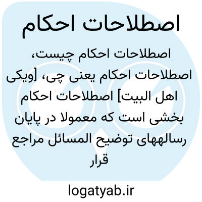 [ویکی اهل البیت] اصطلاحات احکام بخشی است که معمولا در پایان رسالههای توضیح المسائل مراجع قرار میگیرد و اصلاحات مربوط به احکام به کار رفته در رساله را توضیح میدهد. فهرست کامل این اصطلاحات به شرح جدول زیر است :