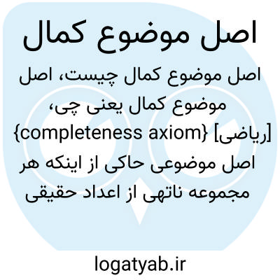 {completeness axiom} [ریاضی] اصل موضوعی حاکی از اینکه هر مجموعه ناتهی از اعداد حقیقی که از بالا کران دار باشد دارای زبرینه است متـ. اصل کوچک ترین کران بالا least-upper-bound axiom