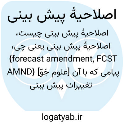 {forecast amendment, FCST AMND} [علوم جَوّ] پیامی که با آن تغییرات پیش بینی جوّی معتبر قبلی را اعلام می کنند