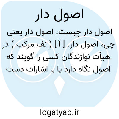 اصول دار. [ اُ ] ( نف مرکب ) در هیأت نوازندگان کسی را گویند که اصول نگاه دارد یا با اشارات دست و چوب و با ضرب آنان را به اصول رهبری کند.آنکه با طبل یا دف یا دورویه ( دایره ) اصول نگاه دارد و خوانندگان و رقاصان و ورزشکاران را رهبری کند.