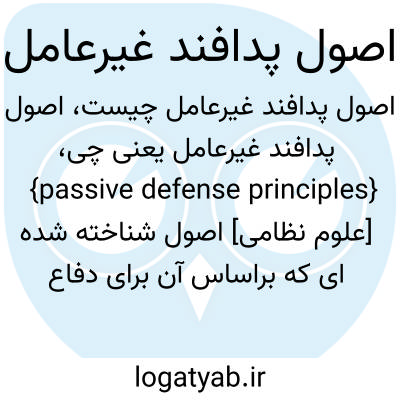 {passive defense principles} [علوم نظامی] اصول شناخته شده ای که براساس آن برای دفاع و حفاظت در مقابل اقدامات تجاوزگرانه اقدامات پدافندی غیرعامل صورت می گیرد