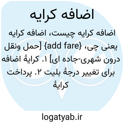 {add fare} [حمل ونقل درون شهری-جاده ای] 1. کرایۀ اضافه برای تغییر درجۀ بلیت 2. پرداخت کرایۀ اضافه در مقصد در سامانه ای که کرایه براساس مسافت اخذ میشود و اعتبار باقی مانده در بلیت کمتر از کرایۀ واقعی است