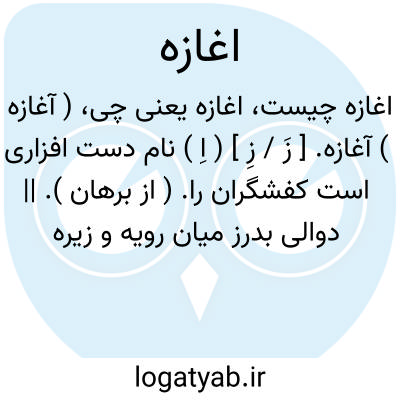 ( آغازه ) ( اسم ) ۱ - دست افزاریست برای کفش دوزان. ۲ - دوالی که مابین چرم وروی. کفش دوزند تا آب و خاک بدرون کفش نرود.