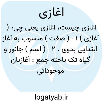 ( آغازی ) ۱ - ( صفت ) منسوب به آغاز ابتدایی بدوی. ۲ - ( اسم ) جانور و گیاه تک یاخته جمع: آغازیان موجوداتی که دارای یک یاخته هستند