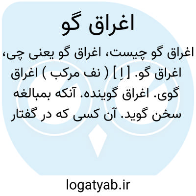 اغراق گو. [ اِ ] ( نف مرکب ) اغراق گوی. اغراق گوینده. آنکه بمبالغه سخن گوید. آن کسی که در گفتار از حد تجاوز کند.
