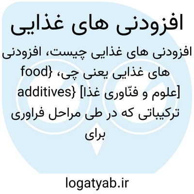 {food additives} [علوم و فنّاوری غذا] ترکیباتی که در طی مراحل فراوری برای بهبود دادن رنگ و طعم و ماندگاری و غیره به محصولات غذایی اضافه می کنند