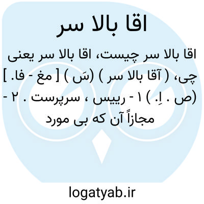 ( آقا بالا سر ) (سَ ) [ مغ - فا. ] (ص. اِ. ) ۱ - رییس، سرپرست. ۲ - مجازاً آن که بی مورد در کار دیگران دخالت و امر و نهی می کند.