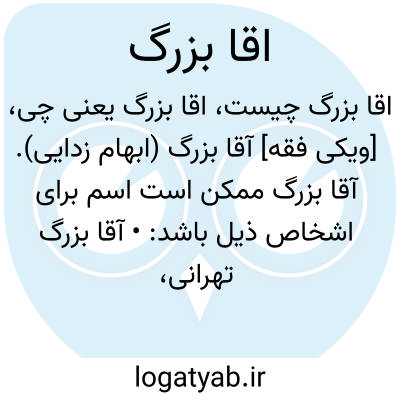 [ویکی فقه] آقا بزرگ (ابهام زدایی). آقا بزرگ ممکن است اسم برای اشخاص ذیل باشد: • آقا بزرگ تهرانی، فقیه و کتاب شناس شیعی امامی• آقا بزرگ علوی، ادیب و نویسنده
