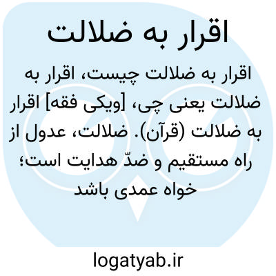 [ویکی فقه] اقرار به ضلالت (قرآن). ضلالت، عدول از راه مستقیم و ضدّ هدایت است؛ خواه عمدى باشد یا سهوى؛ زیاد باشد یا کم.