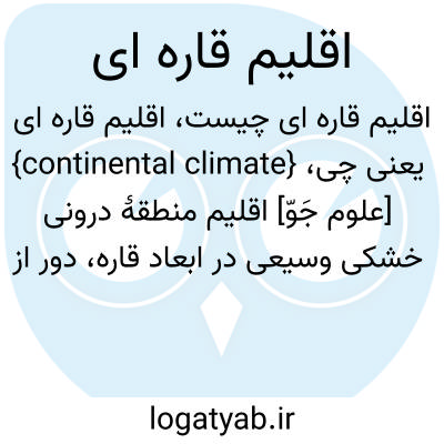 {continental climate} [علوم جَوّ] اقلیم منطقۀ درونی خشکی وسیعی در ابعاد قاره، دور از تأثیرات مستقیم اقیانوس ها