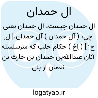 ( آل حمدان ) آل حمدان.[ ل ِ ح َ ] ( اِخ ) حکام حلب که سرسلسله آنان عبداﷲبن حمدان بن حارث بن نعمان از بنی ربیعه بوده و در عهد مکتفی در 293 هَ.ق. حکومت حلب یافته و 25 سال حکم رانده و تا 391 اخلاف او در حلب فرمانروائی داشته اند.