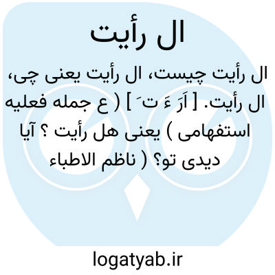ال رأیت. [ اَرَ ءَ ت َ ] ( ع جمله فعلیه استفهامی ) یعنی هل رأیت ؟ آیا دیدی تو؟ ( ناظم الاطباء ). و رجوع به هل شود.