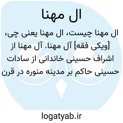 [ویکی فقه] آل مهنا. آل مهنا از اشراف حسینی خاندانی از سادات حسینی حاکم بر مدینه منوره در قرن چهارم بودند.