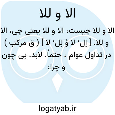 الا و للا. [ اِل ْ لا وُ لِل ْ لا ] ( ق مرکب ) در تداول عوام، حتماً. لابد. بی چون و چرا: الا و للا همین را میخواهم که میخواهم. رجوع به ماده قبل شود.