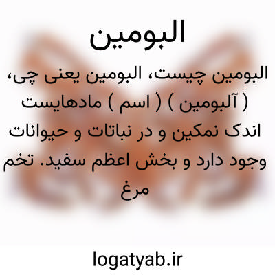 ( آلبومین ) ( اسم ) مادهایست اندک نمکین و در نباتات و حیوانات وجود دارد و بخش اعظم سفید. تخم مرغ و سرم خون از آن تشکیل میشود ماد. بیاض البیض.