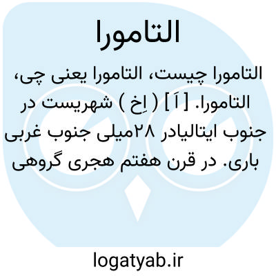 التامورا. [ اَ ] ( اِخ ) شهریست در جنوب ایتالیادر 28میلی جنوب غربی باری. در قرن هفتم هجری گروهی از مهاجران یونانی در آنجا سکونت جستند. زیتون و انگور در آنجا فراوانست. ( ضمیمه معجم البلدان ص 359 ).