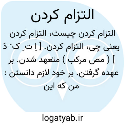 التزام کردن. [ اِ ت ِ ک َ دَ ] ( مص مرکب ) متعهد شدن. بر عهده گرفتن. بر خود لازم دانستن: من که این تاریخ را پیش گرفته ام التزام بکرده ام تا آنچه نویسم یا از معاینه من است یا از سماع درست از مردی ثقة... ( تاریخ بیهقی ). این حق آدمیان ( قصاص ) التزام باید کردن بخلاف حقوق من ( خدا )... ( تفسیر ابوالفتوح ).