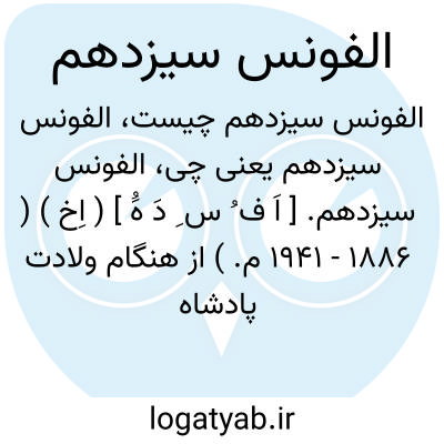 الفونس سیزدهم. [ اَ ف ُ س ِ دَ هَُ ] ( اِخ ) ( 1886 - 1941 م. ) از هنگام ولادت پادشاه اسپانیا بود برای استقرار رژیم جمهوری از پادشاهی چشم پوشید ( 1931 م. ) او کشورخود را به مغرب شمالی توسعه داد و1941 م. درگذشت.