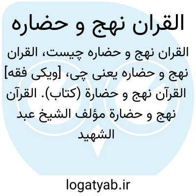 [ویکی فقه] القرآن نهج و حضاره (کتاب). القرآن نهج و حضارة مؤلف الشیخ عبد الشهید مهدی الستراوی، کتاب پیرامون برخی از مسائل علوم قرآنی نوشته شده است.