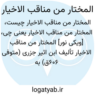 [ویکی نور] المختار من مناقب الاخیار تألیف ابن اثیر جزری (متوفی 606ق) به زبان عربی، در شرح حال صحابه و تابعین و بسیاری دیگر از شخصیت های مسلمان است. نویسنده به گفته خود بر آن بوده است که اخبار و آثار صحابه و تابعین را با حذف سند از لابلای کتاب های نگارش یافته، بر حسب ذوق و سلیقه خود گردآورد.
