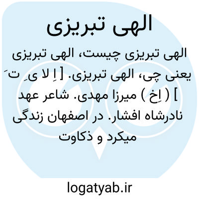 الهی تبریزی. [ اِ لا ی ِ ت َ ] ( اِخ ) میرزا مهدی. شاعر عهد نادرشاه افشار. در اصفهان زندگی میکرد و ذکاوت و فطانت بسیار داشت. در فنون هیئت و نجوم و علم احکام از مشاهیر آن عصر بشمار می آمد. ابیات شایسته و بلندی دارد، از آن جمله است: