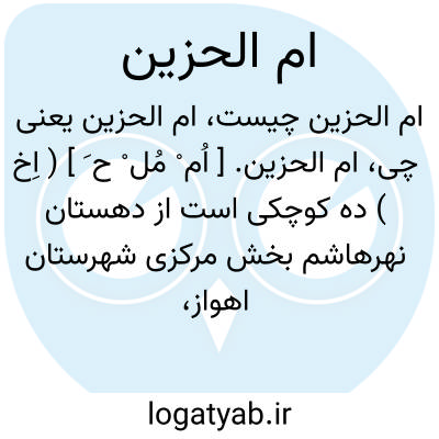 ام الحزین. [ اُم ْ مُل ْ ح َ ] ( اِخ ) ده کوچکی است از دهستان نهرهاشم بخش مرکزی شهرستان اهواز، واقع در 72 هزارگزی جنوب باختری اهواز و 24 هزارگزی خاور راه آهن اهواز به خرمشهر. در دشت واقع شده و گرمسیر است و 40 تن سکنه دارد. آب آن از رودخانه کارون تأمین میشود. محصولش غلات و شغل مردم کشاورزی و گله داری است. ساکنان آن از طایفه سادات هستند. ( از فرهنگ جغرافیایی ایران ج 6 ).