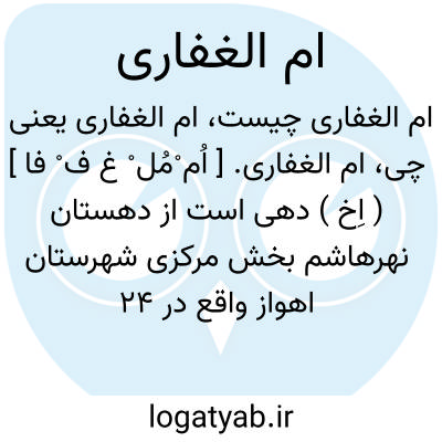 ام الغفاری. [ اُم ْمُل ْ غ ف ْ فا ] ( اِخ ) دهی است از دهستان نهرهاشم بخش مرکزی شهرستان اهواز واقع در 24 هزارگزی باختری اهواز و دو هزارگزی راه شوسه اهواز به هویزه در کنار رود کرخه کور. در دشت واقع شده و گرمسیر است و 60 تن سکنه دارد. آب آن از چاه تأمین میشود. محصولش غلات وشغل مردم کشاورزی و گله داری است. ساکنان آن از طایفه بنی تمیم هستند. ( از فرهنگ جغرافیایی ایران ج 6 ).