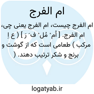 ام الفرج. [ اُم ْ مُل ْ ف َ رَ ] ( ع اِ مرکب ) طعامی است که از گوشت و برنج و شکر ترتیب دهند. ( از اقرب الموارد )( منتهی الارب ) ( ناظم الاطباء ) ( آنندراج ). جوذابة. ( اقرب الموارد ). و گفته اند نانی است که در اندرون آن گوشت مرغ و یا گوشت بزغاله تعبیه کنند و در تنور بپزند. ( از ناظم الاطباء ) ( از آنندراج ) ( از منتهی الارب ).