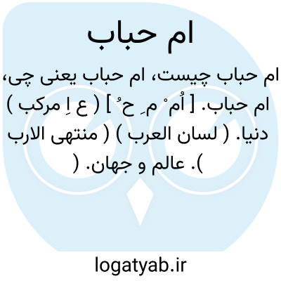 ام حباب. [ اُم ْ م ِ ح ُ ] ( ع اِ مرکب ) دنیا. ( لسان العرب ) ( منتهی الارب ). عالم و جهان. ( ناظم الاطباء ).
