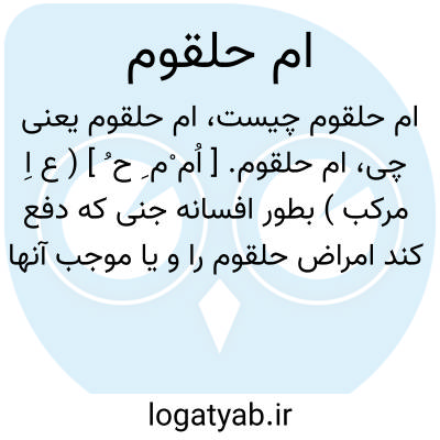ام حلقوم. [ اُم ْم ِ ح ُ ] ( ع اِ مرکب ) بطور افسانه جنی که دفع کند امراض حلقوم را و یا موجب آنها گردد. ( ناظم الاطباء ).