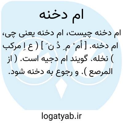 ام دخنه. [ اُم ْ م ِ دُ ن َ ] ( ع اِ مرکب ) نخله. گویند ام دجیه است. ( از المرصع ). و رجوع به دخنه شود.