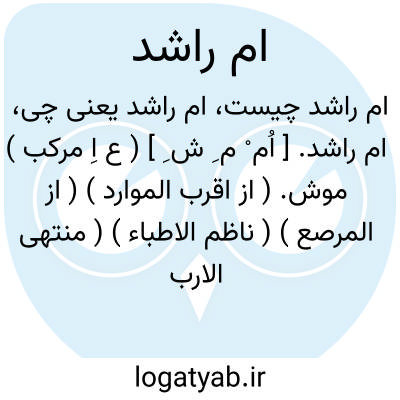 ام راشد. [ اُم ْ م ِ ش ِ ] ( ع اِ مرکب ) موش. ( از اقرب الموارد ) ( از المرصع ) ( ناظم الاطباء ) ( منتهی الارب ). || بیابان. ( مهذب الاسماء ). مفازه. ( المرصع ).