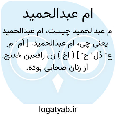 ام عبدالحمید. [ اُم ْ م ِ ع َ دُل ْ ح َ ] ( اِخ ) زن رافعبن خدیج. از زنان صحابی بوده. رجوع به الاصابة فی تمییز الصحابة ج 8 ص 257 شود.